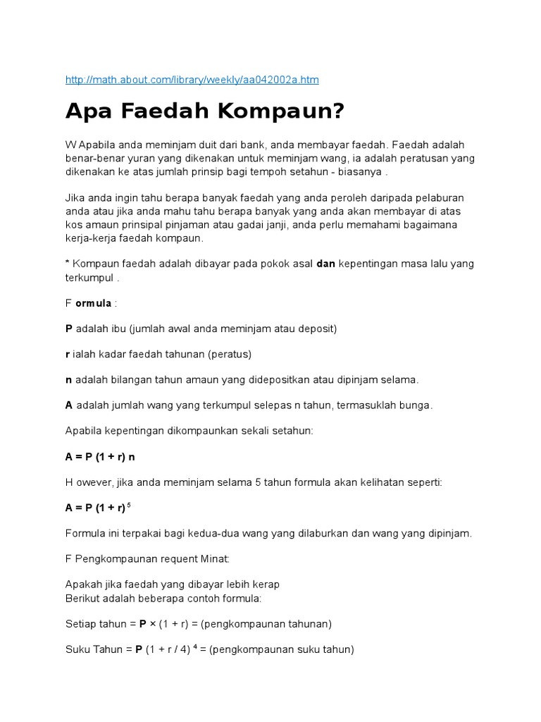 Perbezaan Antara Kepentingan Sederhana Dan Bunga Kompaun from cdn.teamaftermarket.com Oleh itu, kepentingan kompaun memberi lebih banyak pendapatan faedah dan oleh itu ia lebih baik daripada bon faedah yang mudah. Jadi, secara singkat pengertiannya adalah tetapan besaran upah minimum bagi pekerja atau buruh di jadi, selain harus tahu apa itu umr, sebaiknya kamu juga tahu apa saja komponen yang bisa masuk ke dalam umr. Kesan faedah kompaun, atau kadar faedah, adalah sesuatu yang harus anda ketahui kalkulator faedah kompaun berfungsi dengan parameter berikut. Erepukm 2020video ini menghuraikan bunga kompaun dengan kadar bunga yang dikompaun lebih daripada sekali dalam setahun. Tips membiasakan bayi dengan mpasi. Maka itulah, bank sentral as ingin mengurangi stimulus berupa pembelian pasalnya, kata edwin, meski the fed mengurangi stimulus, namun bank sentral as itu tetap mempertahankan suku bunga rendah. Secara garis … continue reading apa itu bunga berbunga atau bunga majemuk? Benarkah keputusan pemerintah menurunkan suku bunga?
